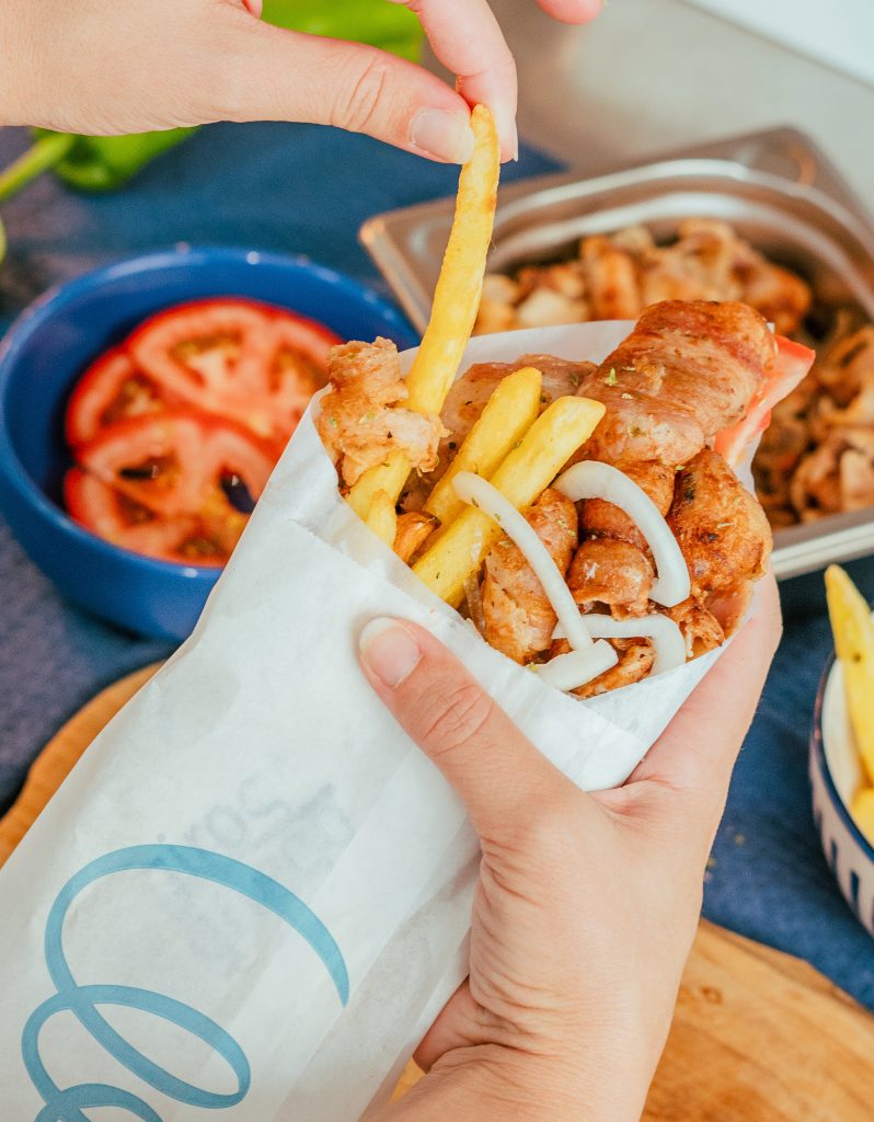 Trabajamos para que cada cliente viva una experiencia que le transporte a Grecia, independientemente de la ciudad en la que se encuentre, manteniendo un vínculo cultural y gastronómico permanente entre España y Tesalónica. Y lo hacemos con carne especiada al estilo tradicional, pan de pita, salsas originales, como nuestra famosa hugaresa y producto 100% griego.